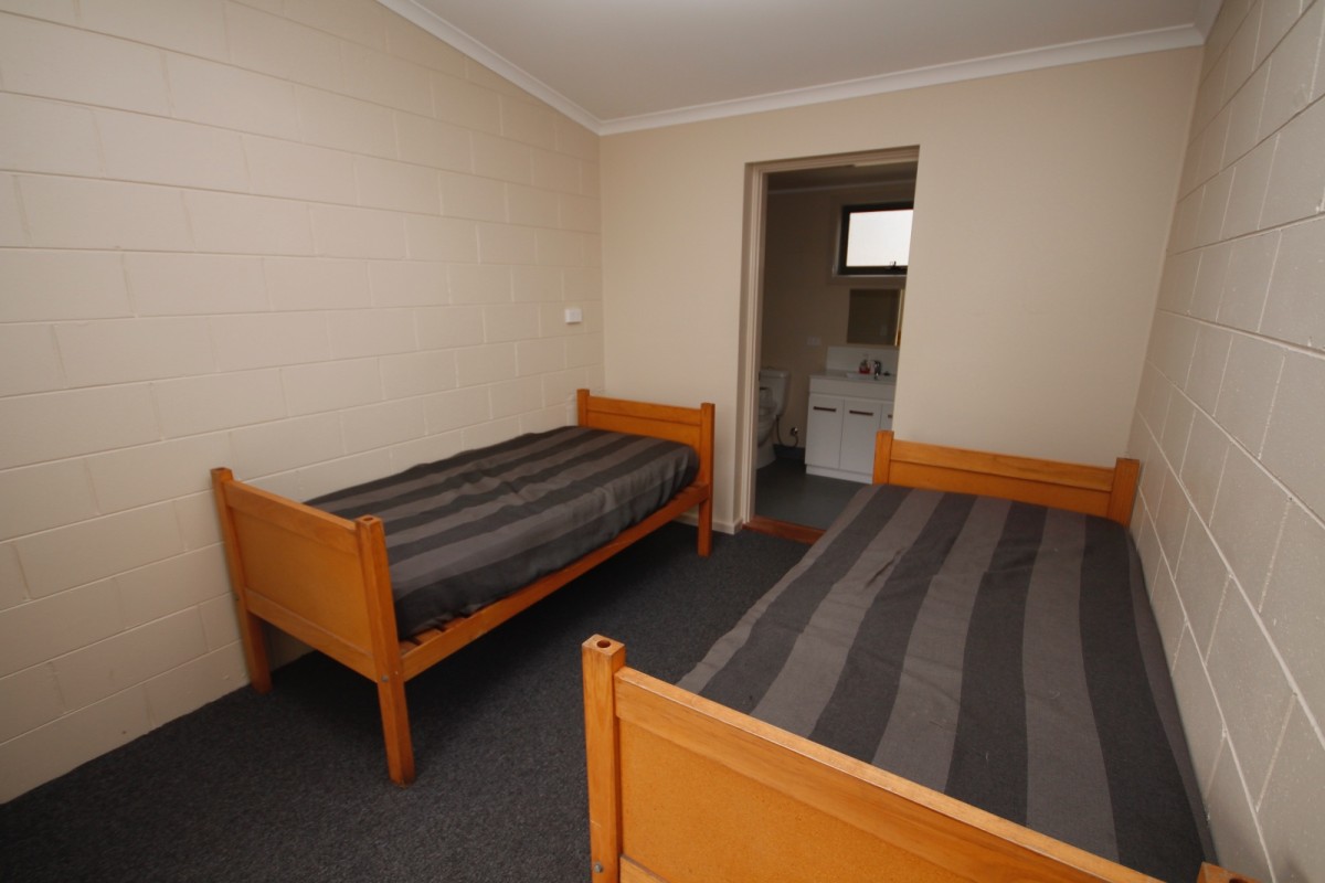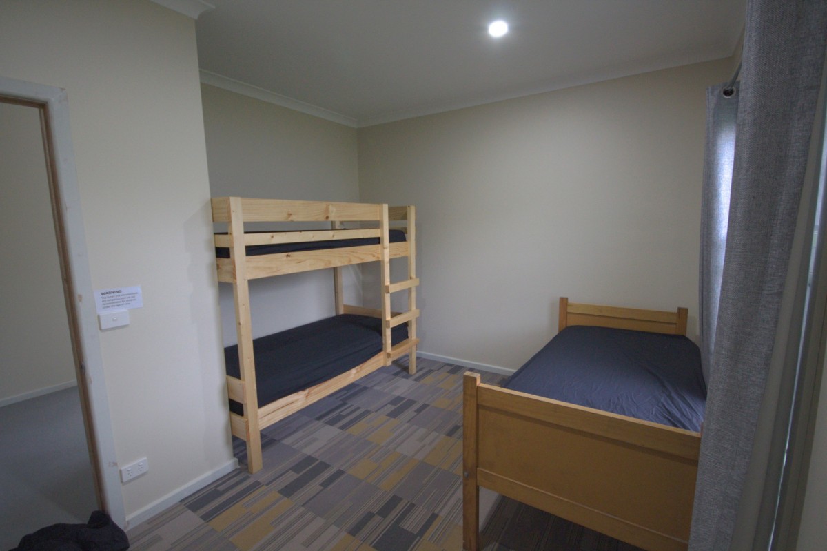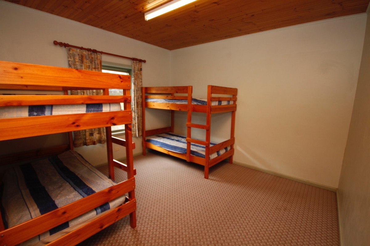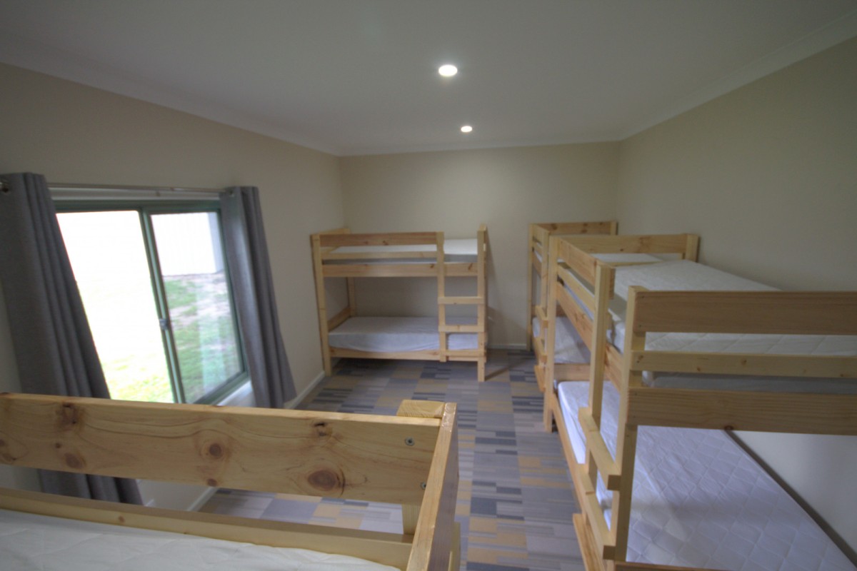Each cabin has three bedrooms with a separate shower and toilet. One cabin has full disabled access. Male and female amenities are located at either end of the bunkrooms with separate disabled toilet facilities provided in each. There is also a laundry with sinks, a washing machine and commercial dryer for your convenience.
